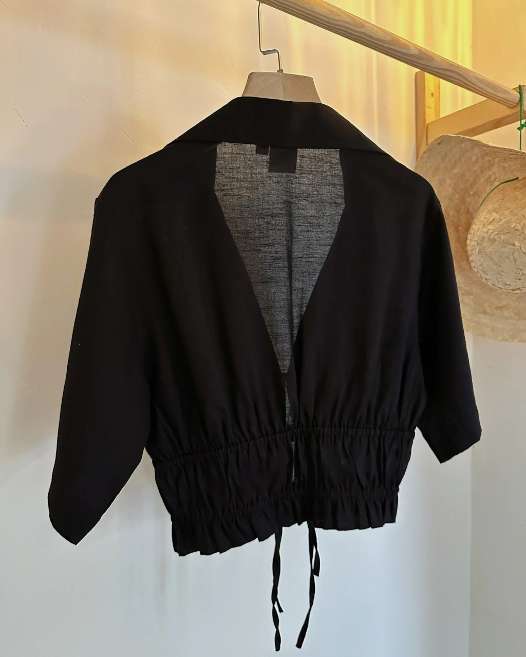 Parte de nuestra colección Tokio, la Blusa Kurai recibe su nombre de la palabra japonesa Kurai (暗い), que significa “oscuro” o “sombrío”. Inspirada en la estética sobria y elegante del Tokio moderno, esta pieza captura la fuerza que puede tener lo sutil, con detalles que hacen toda la diferencia.