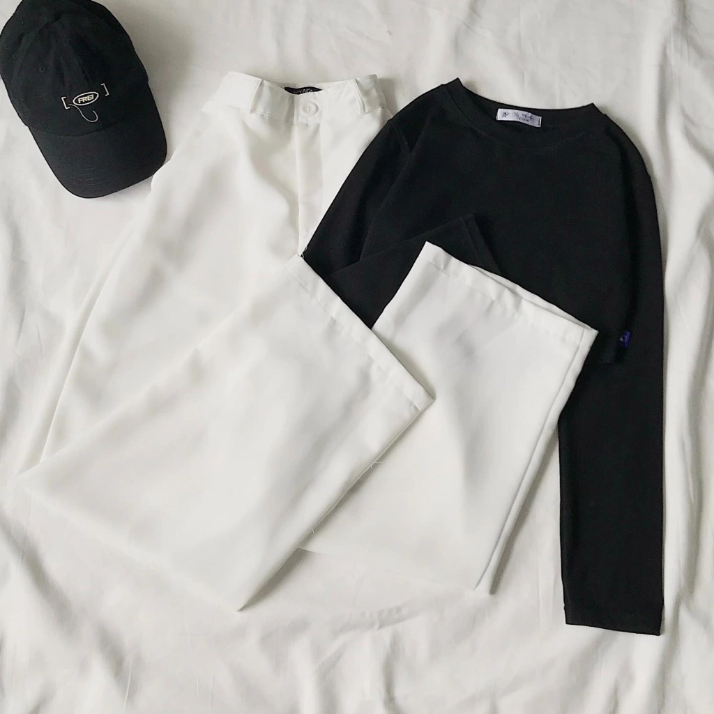 El conjunto se presenta en elegante color negro para la blusa y blanco rito para el pantalón, lo que lo convierte en una opción versátil que puedes combinar con tus accesorios favoritos y blusas de diferentes estilos.