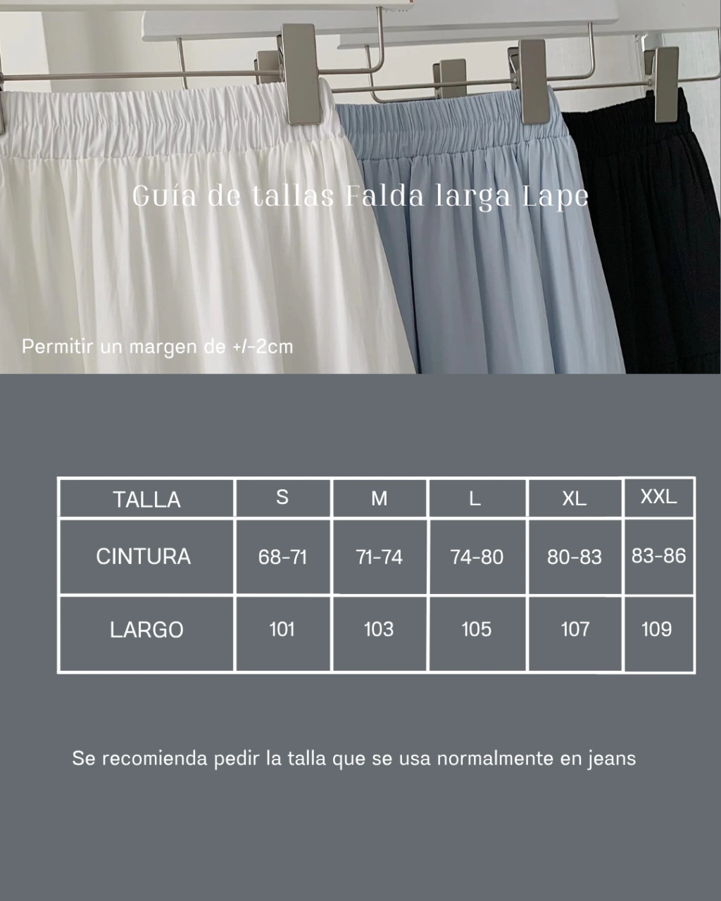 • Tallas Disponibles: Se recomienda pedir la talla que usas en jeans, ya que sus medidas de largo y cintura es el mismo