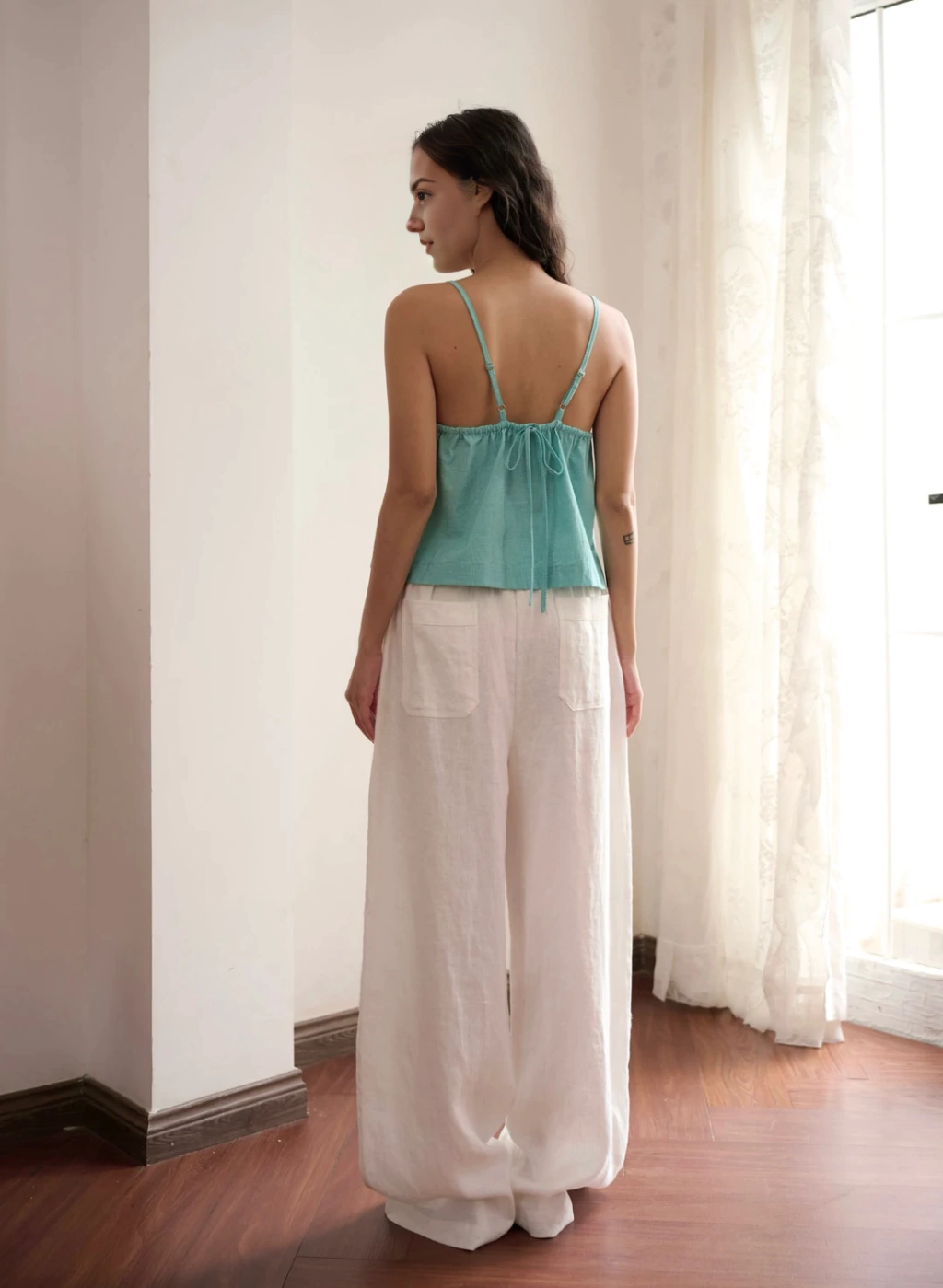 Este pantalón es perfecto para estar cómoda en casa, salir con tus amigas o simplemente lucir arreglada sin tanto esfuerzo. Su tejido en lino fresco lo hace ideal para climas cálidos y para quienes valoran la practicidad sin perder el estilo.